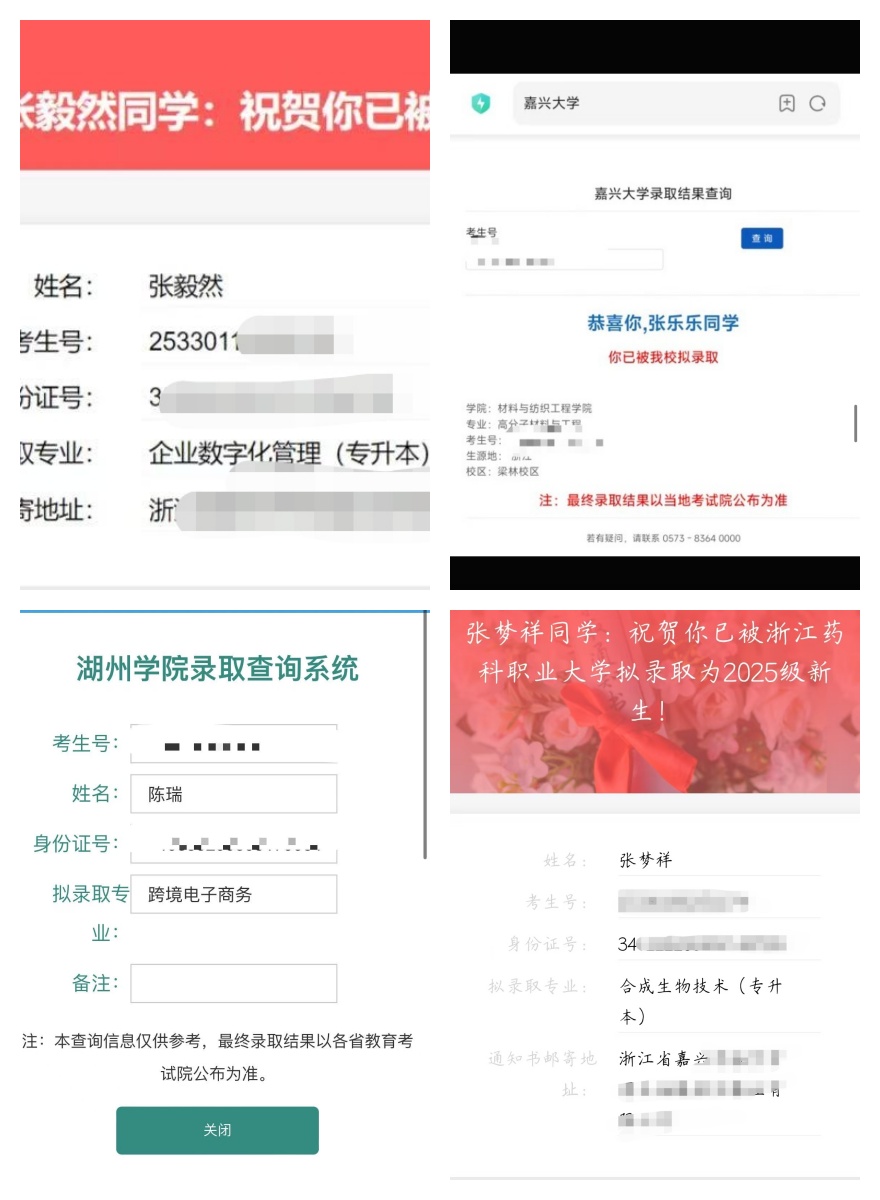 浙江西培专升本学员高分上岸一览