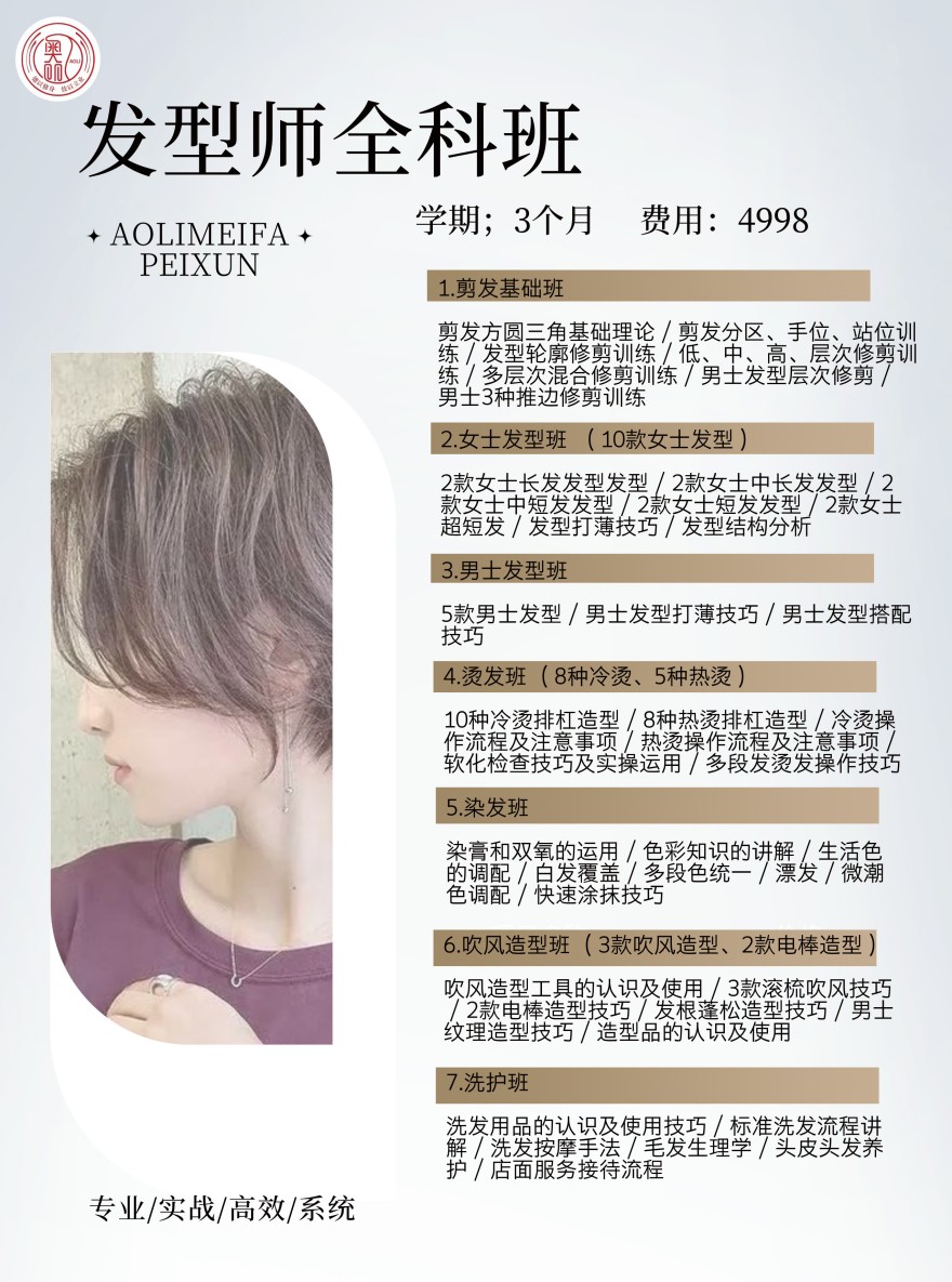 包含课程内容丰富,学习期间每天都有真人实操,每人在学校剪发可以20人以上。烫染可以10人以上,毕业以后跳过美发助理摆脱洗头,直接烫染师,可以快速晋升美发师。美发课程都不赠送工具不提供工具产品使用
