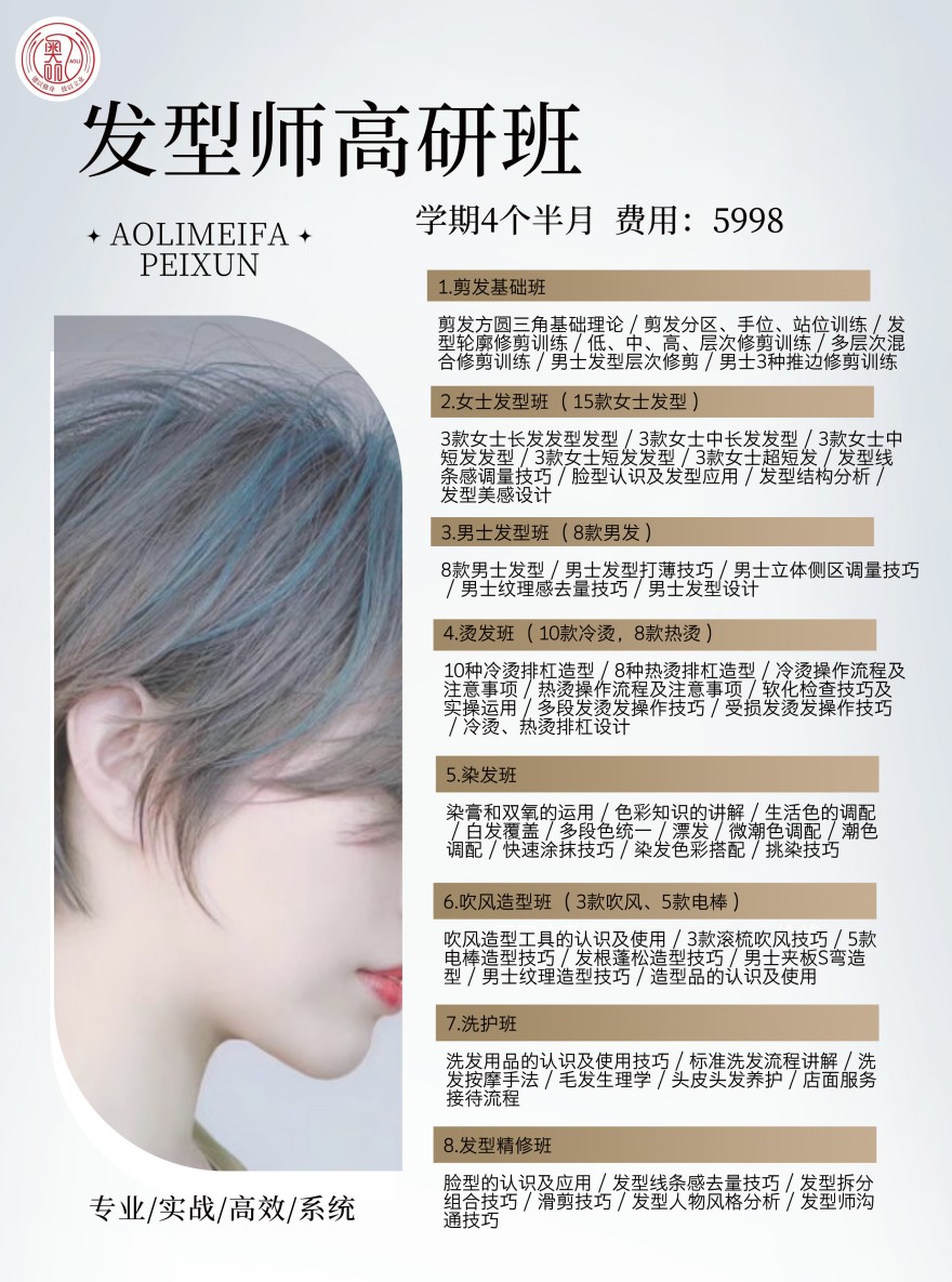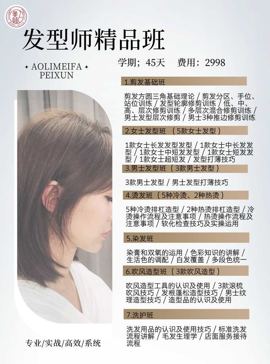 包含课程内容丰富,学习期间每天都有真人实操,每人在学校剪发可以20人以上。烫染可以10人以上,毕业以后跳过美发助理摆脱洗头,直接烫染师,可以快速晋升美发师。美发课程都不赠送工具不提供工具产品使用