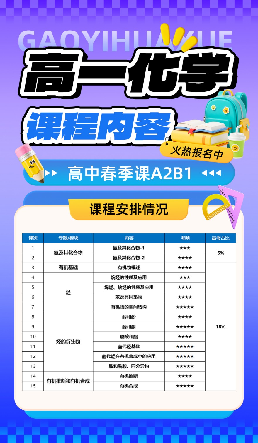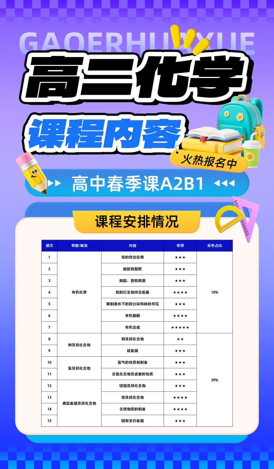 高中化学课程开课了,火热报名中,欢迎咨询!