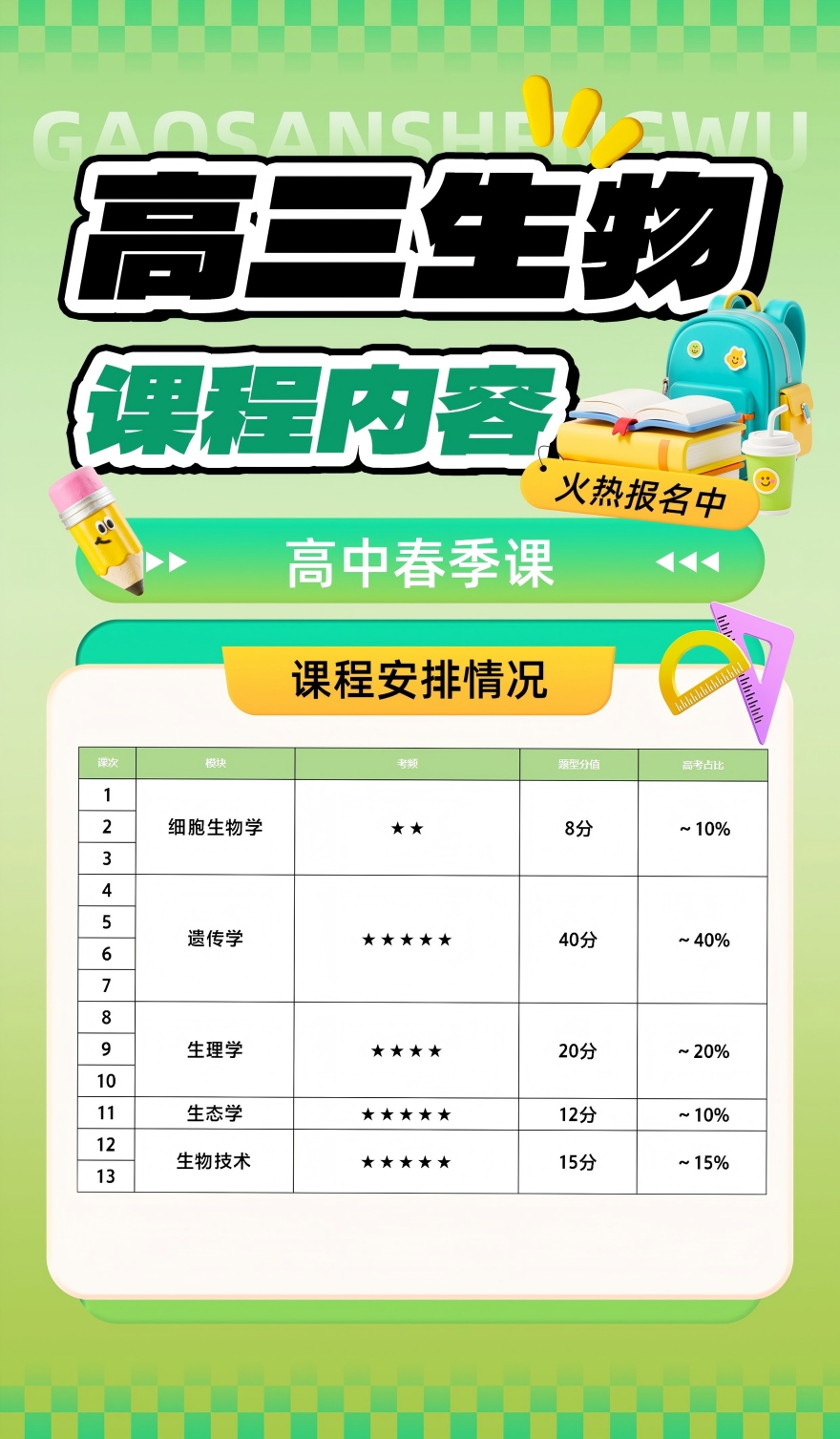 高中生物课程开课了,火热报名中,欢迎咨询!